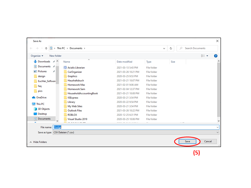 (3) - choose the file format from the drop down menu. Note: depending on your location, please be aware of what your decimal seperator for numbers is. Specifically: if your local system uses a comma as decimal seperator (e.g. location: Germany..."1,23 EUR"), do NOT select Comma Delimited file formats as this will lead to processing errors later on...rather choose Semicolon or Tab as your delimiter.