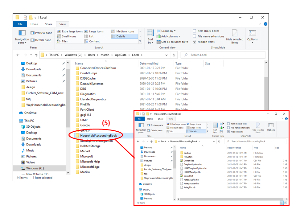(5) - Find and double-click the folder HouseholdAccountingBook...here all the data the application writes and reads is saved. It is a good idea to backup this entire folder once in a while...