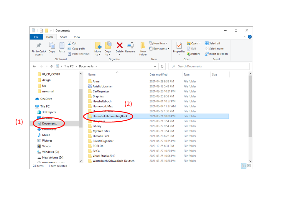 (5) - Find and double-click the folder HouseholdAccountingBook...here all the data the application writes and reads is saved. It is a good idea to backup this entire folder once in a while...